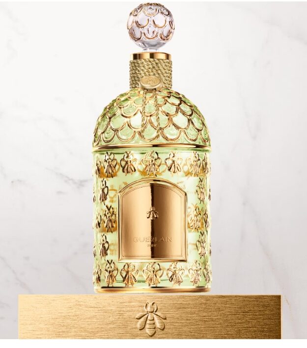 L’abeille, emblème de l’empire, a été choisie par Napoléon Iᵉʳ pour ancrer la nouvelle dynastie dans les origines françaises, en lien avec les 300 abeilles d’or qui furent retrouvées dans le tombeau du père de Clovis Iᵉʳ en 1653. C’est pourquoi lorsque Pierre-François-Pascal Guerlain est missionné en 1854 de fabriquer l’essence qui accompagnera Eugénie de Montijo devant l’autel pour son mariage avec Napoléon, l’écrin fabriqué par les ateliers Pochet du Courval est orné d’une abeille. À la suite de son succès, il est nommé fournisseur officiel de l’impératrice avec son eau de Cologne impériale. Cet emblème de l’abeille est alors adopté par la marque et aujourd’hui comme en 1854 orne les bouteilles de leurs essences.