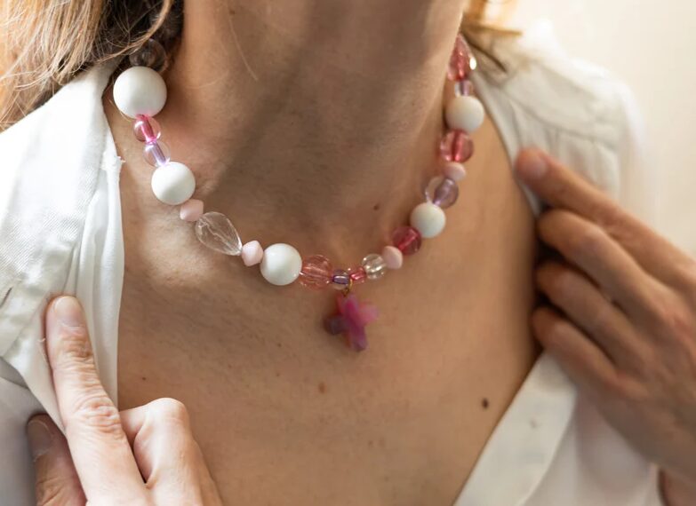 Cette continuité évoquée, n’est autre qu’une façon de préserver le passé tout en s’inscrivant délicatement dans le présent. Portés tous les jours ou occasionnellement lors d’évènements, les bijoux nous suivent tout au long de notre vie. Ils traversent avec nous chaque moment et s’imprègnent des souvenirs. Ces objets, avec le temps, deviennent imparfaits, l’usure leur donne une nouvelle dimension, une beauté unique qui ne pourra jamais être reproduite à l’identique. L’unicité fait la richesse et la valeur. Cette spécificité apporte une nouvelle dimension et devient une réelle source d’inspiration. C’est le cas pour la marque Maison Zélie qui a créé son principe à partir de bijoux upcyclés. « Je chine des éléments anciens — perles, médailles, chaînes, breloques — que je transforme à la main en bijoux uniques, audacieux, porteurs de sens » raconte la créatrice.