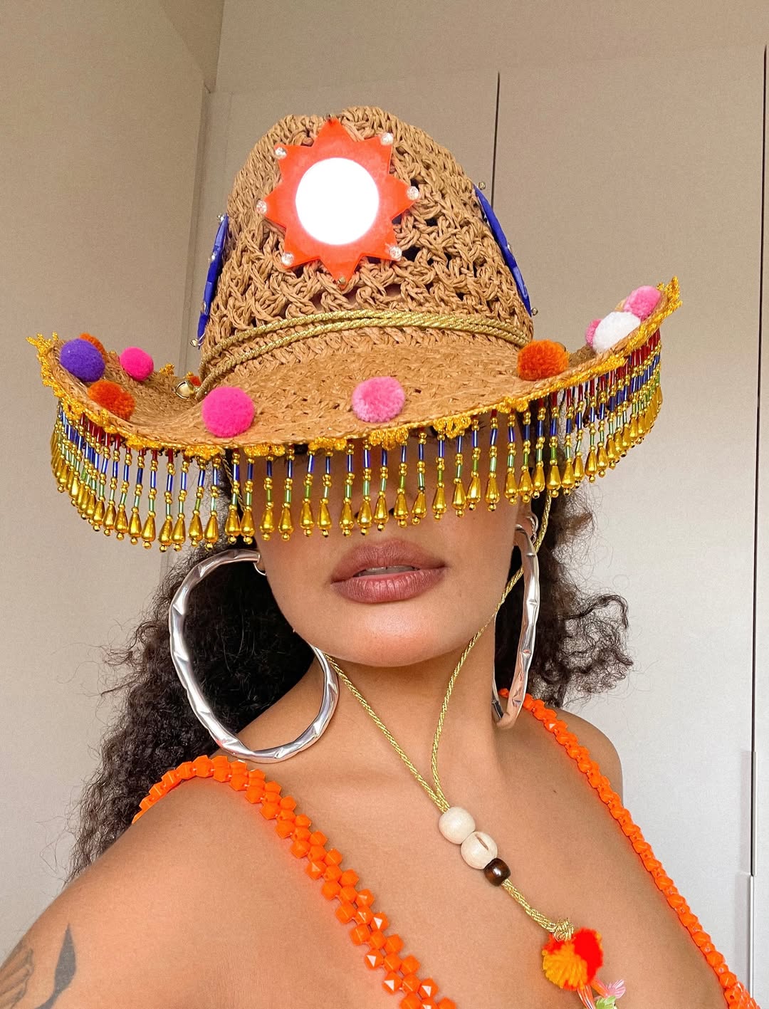 Elle a décidé de faire de la mode sa principale alliée pour sa libération, avec une explosion de couleurs, de textures et un maximalisme de la tête aux pieds, qui composent ses biens les plus précieux : des dizaines de sandales à plateforme, affectueusement appelées tamancas.